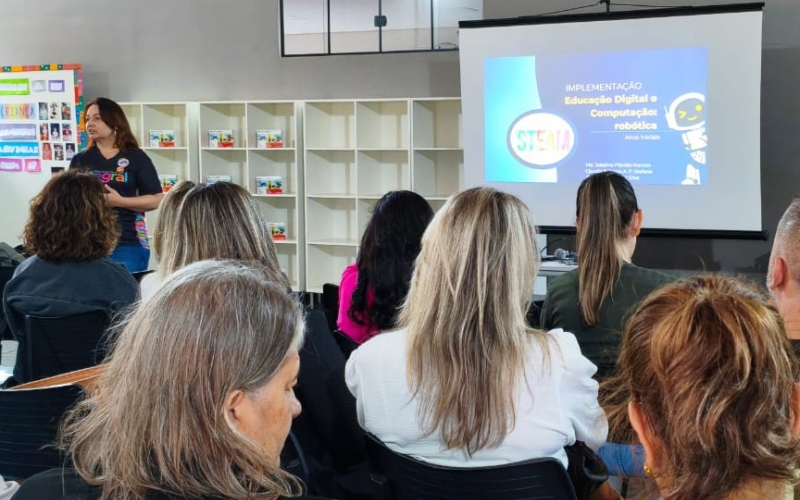 Educadores das redes pública e particular de toda região da Amenorte se reuniram no Centro de Educação Municipal Integral (CEMI 1), em Cianorte, para mergulhar na formação em Educação Digital e Computação: Robótica, promovida pela Secretaria Municipal de Educação, em parceria com o Núcleo Regional de Educação (NRE). O encontro, realizado na quarta-feira (8), teve como missão fortalecer a implementação da Política Nacional de Educação Digital que, pela Lei Federal nº 14.533/2023, tornará a Computação um componente curricular obrigatório em todo o país até 2026.